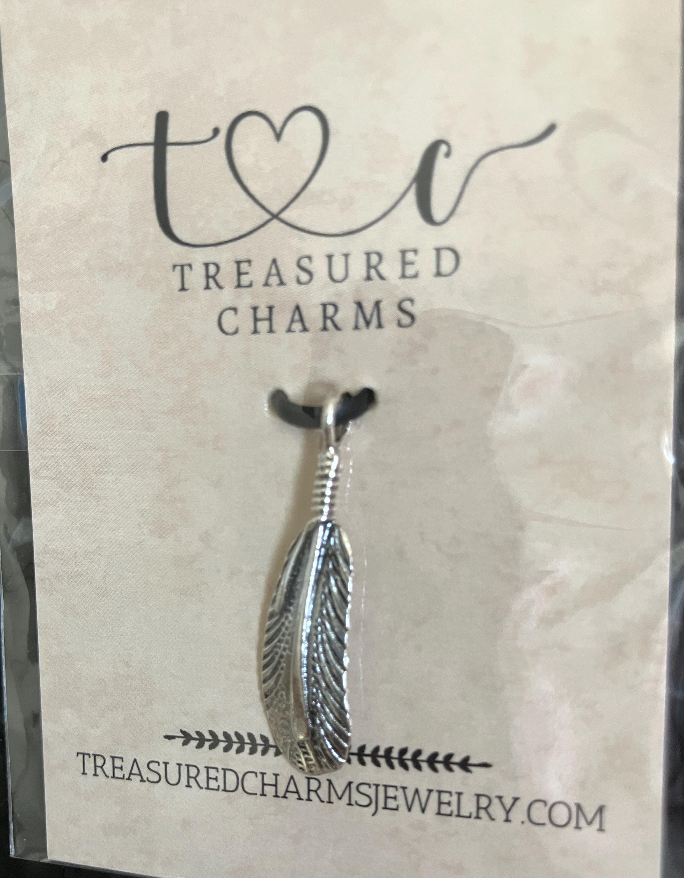 Sterling Silver Feather. Necklace charm on a cable chain or choose chain. Or order a charm with no chain. On time shipping. Great site, Great Seller. Very happy with my purchases.