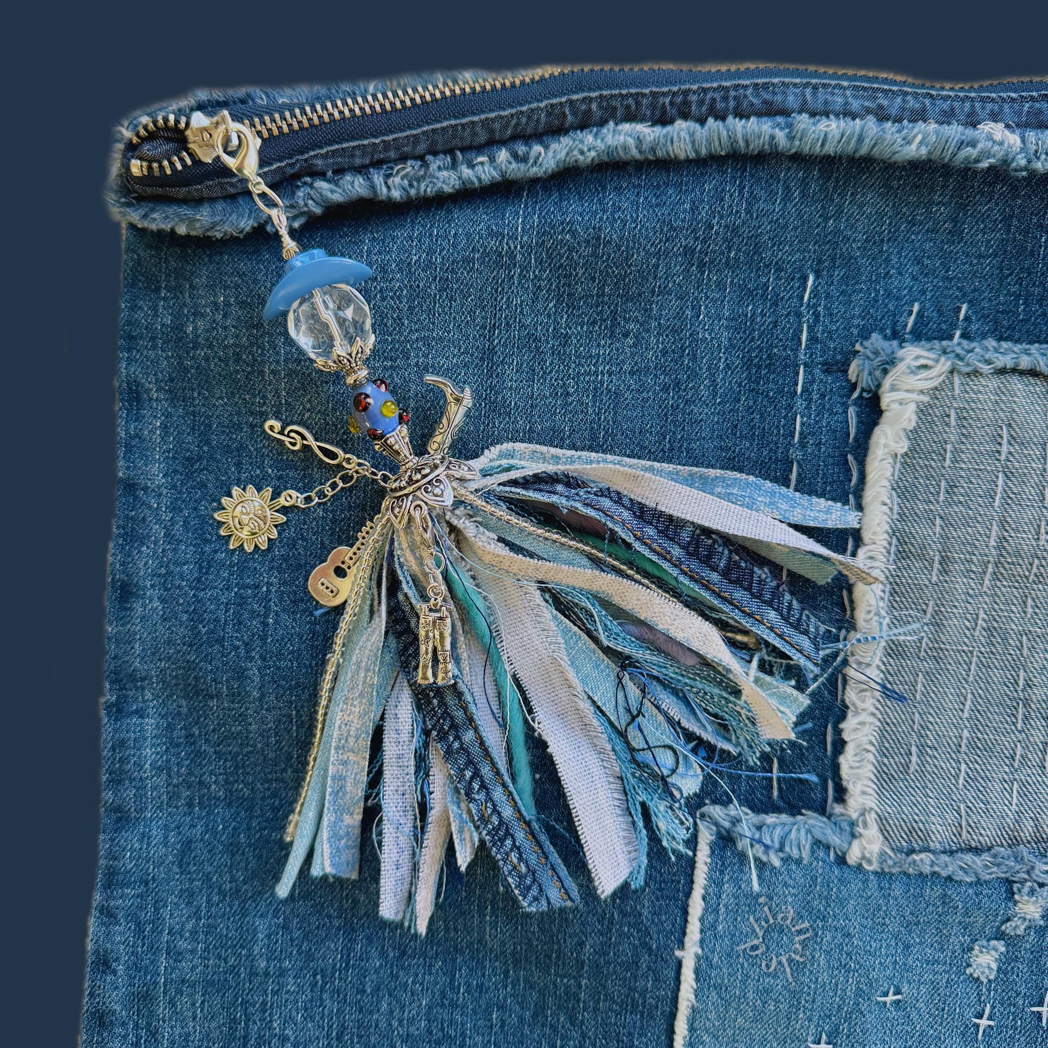 One of the most adorable charms I've ever seen! Who doesn't love anything denim related? I wanted to make a tassel for this large pouch I had purchased years ago at Anthropologie. Using pieces of recycled fabric from some old jeans, I thought the new addition would fit right in. Great experience with this shop; it just took me awhile, after making gifts for the busy holidays, to focus on some things of my own which I've been anxious to create and review!