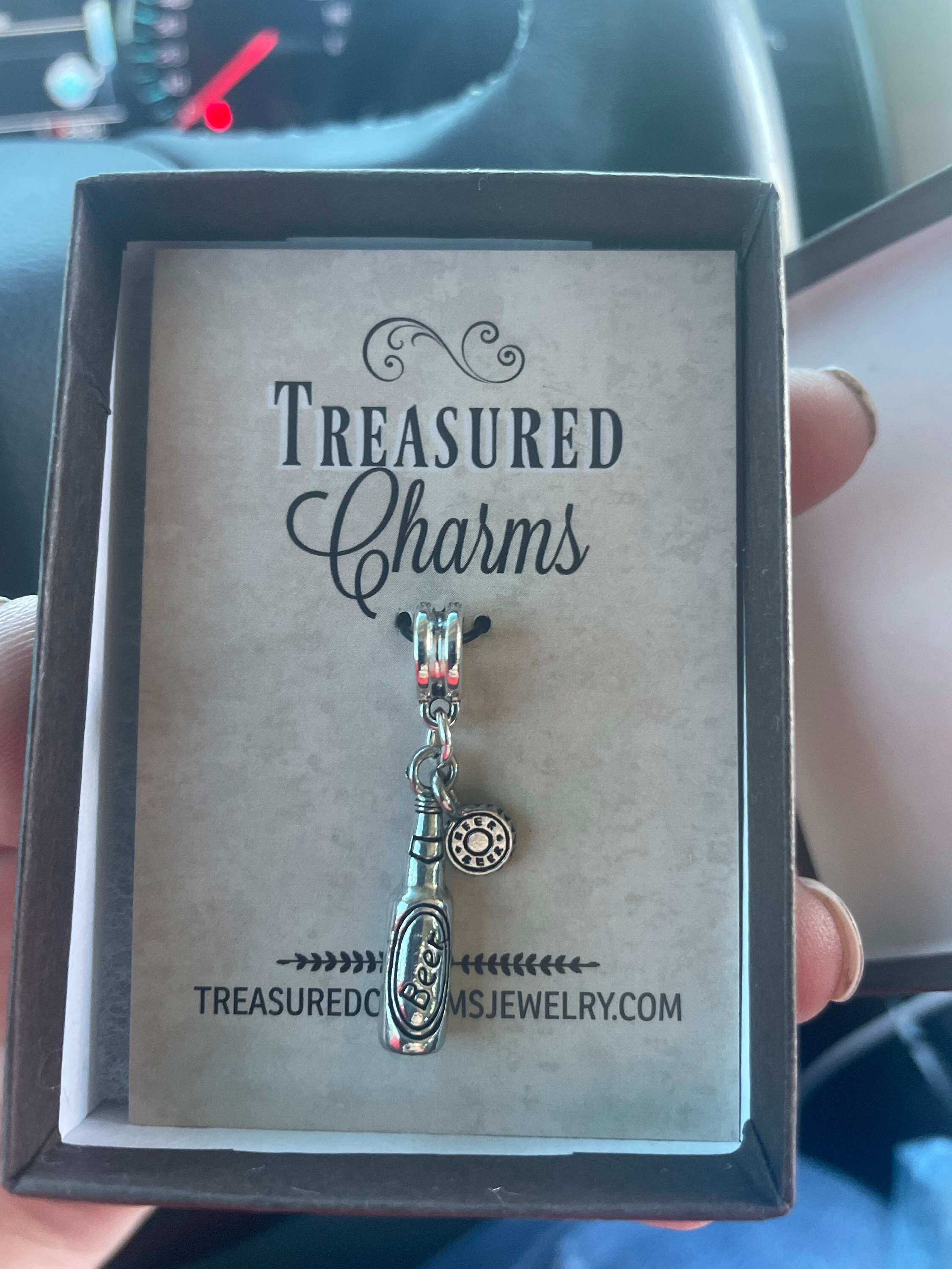 This beer bottle and cap is a perfect charm for a beer charm bracelet.