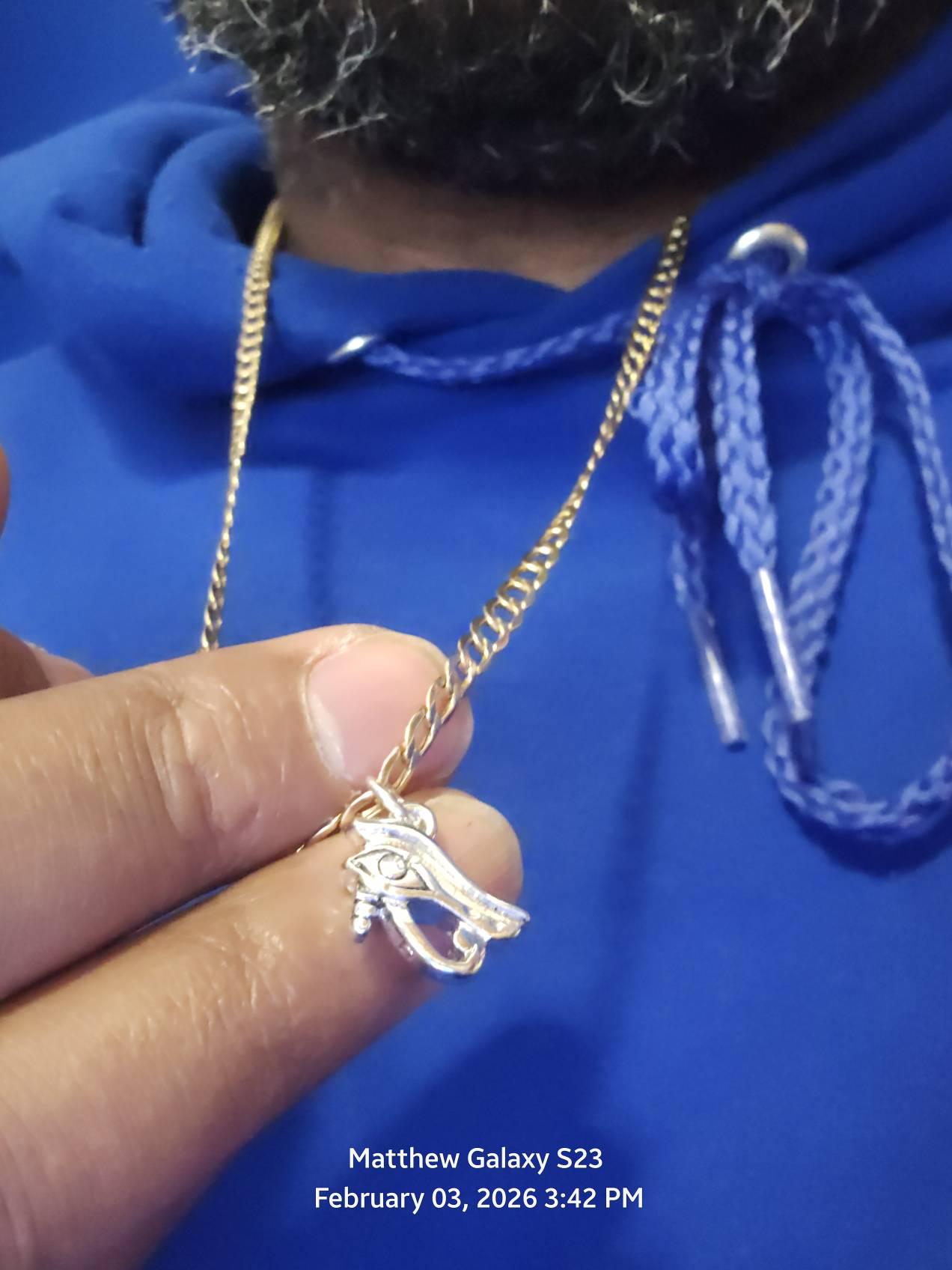 This Eye of Horus Charm comes with a silver jump-ring as pictured. Please note that photo is not to scale and may appear larger to show detail. Refer to exact measurements below.