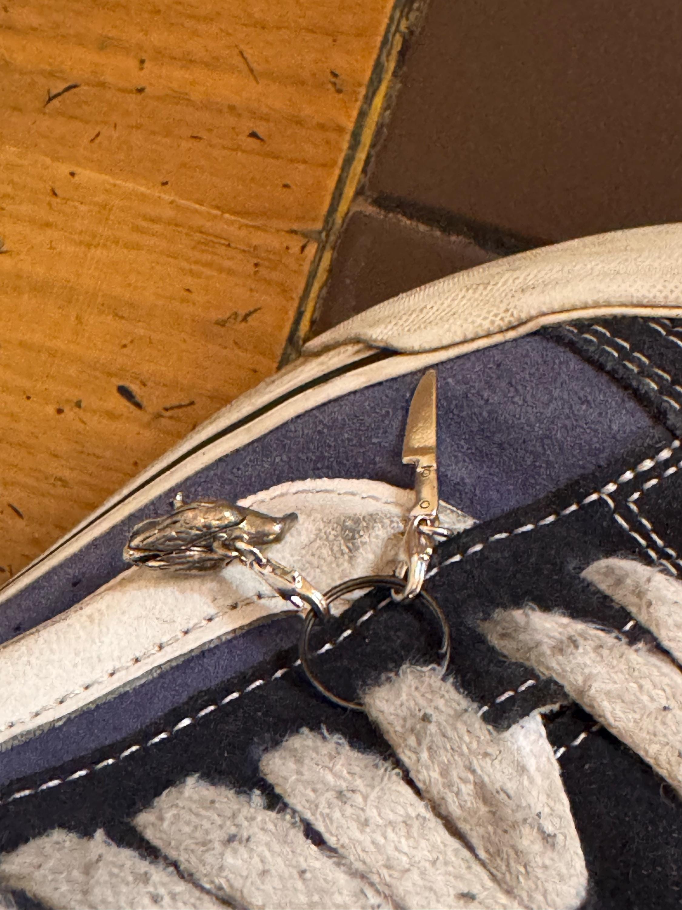 This Miniature Knife Charm comes with a silver jump-ring as pictured. Please note that photo is not to scale and may appear larger to show detail. Refer to exact measurements below.