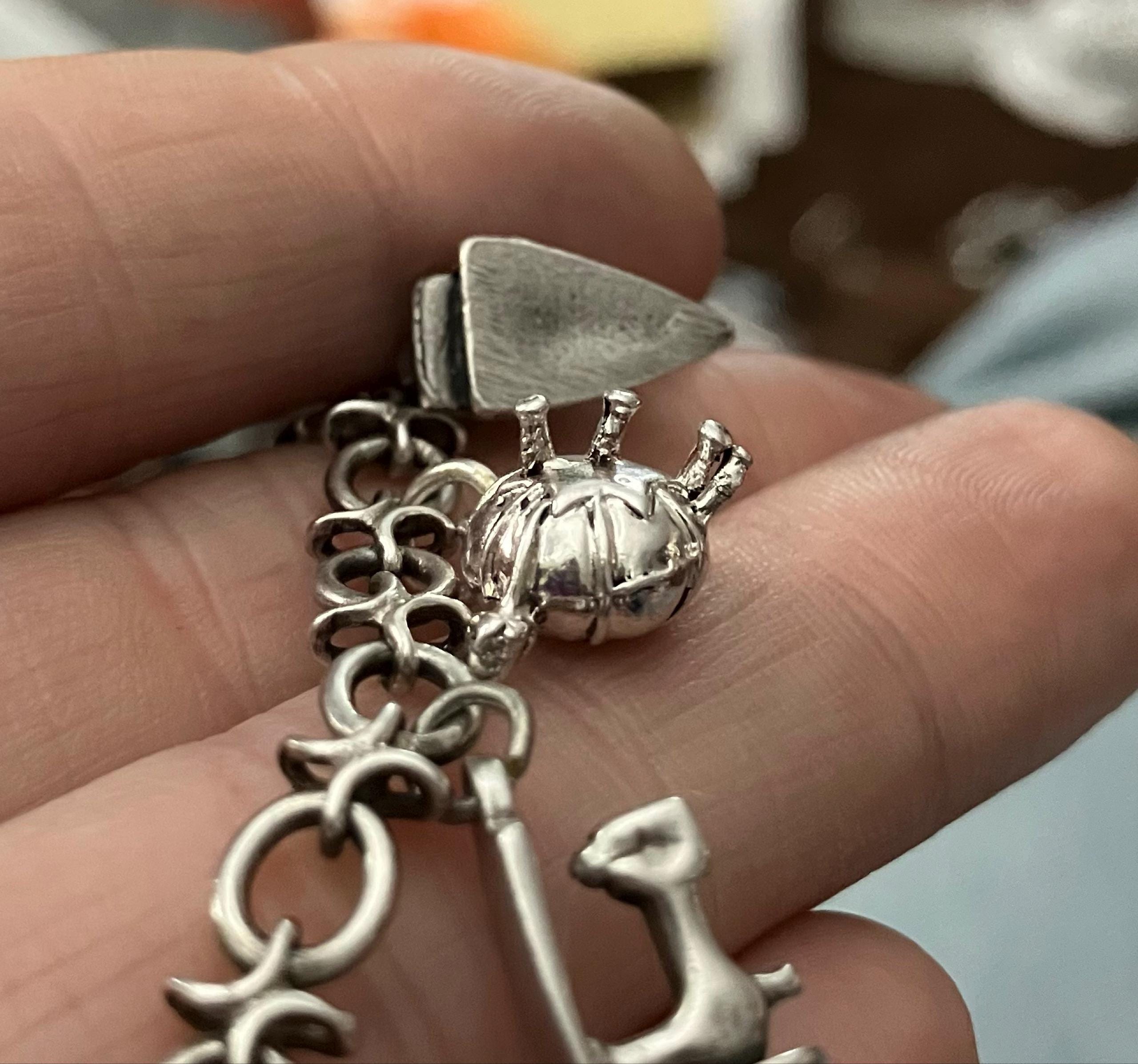 This was the only pin cushion silver charm I could find. The material is not sterling silver, but the seller is clear in the description that it’s pewter, and it looks exactly as pictured. Adorable charm for my bracelet and packaged so nicely! Thank you!