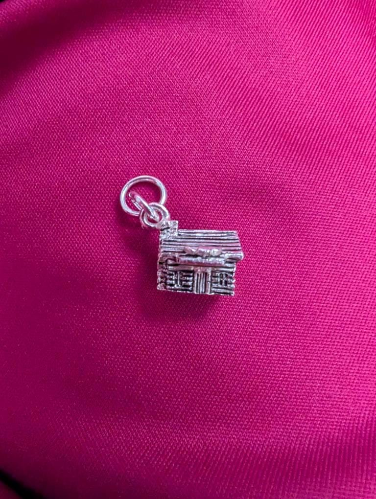 This Log Cabin Charm comes with a silver jump-ring as pictured. Please note that photo is not to scale and may appear larger to show detail. Refer to exact measurements below.