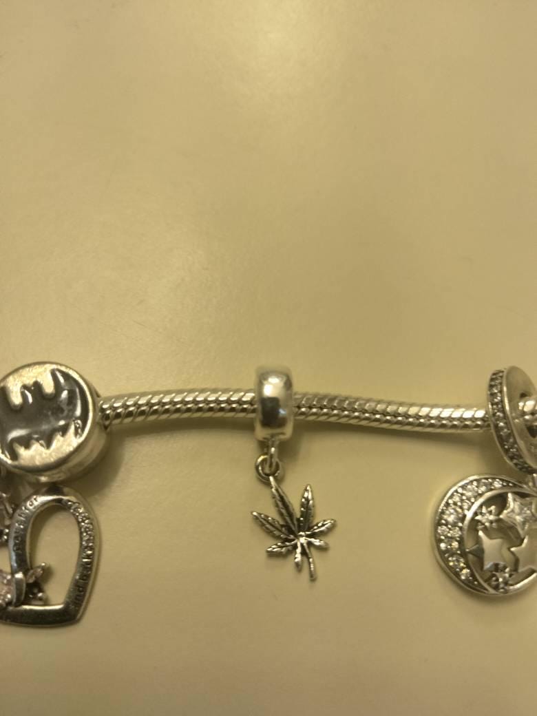 This Marijuana Leaf Charm comes with a silver dangle bead as pictured. Fits on all major brand European style bracelets. A list of compatible chains is available here: https://etsy.me/2BY7DAW