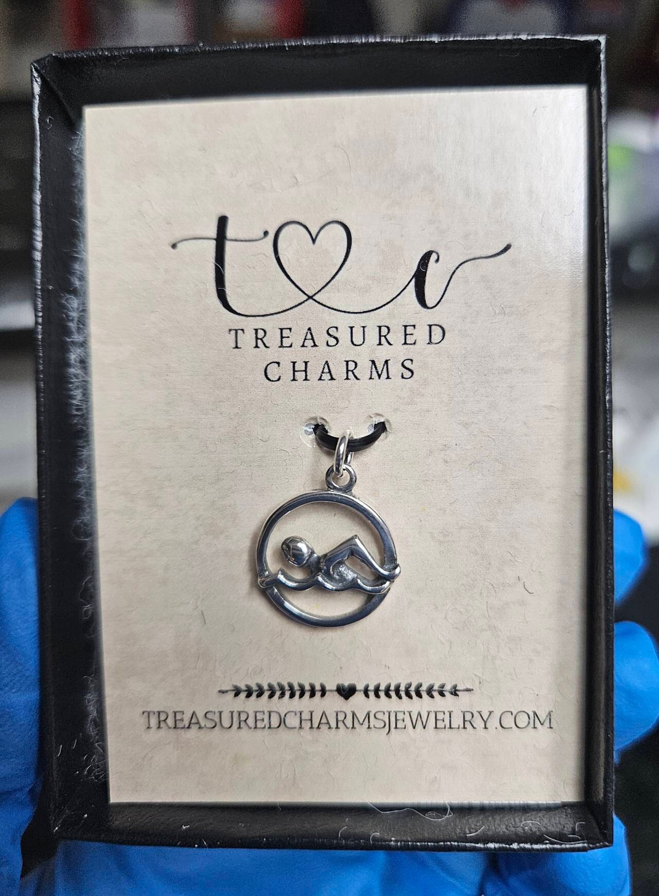 More swimming themed items available from my shop: https://www.etsy.com/shop/treasuredcharms/search?search_query=swim