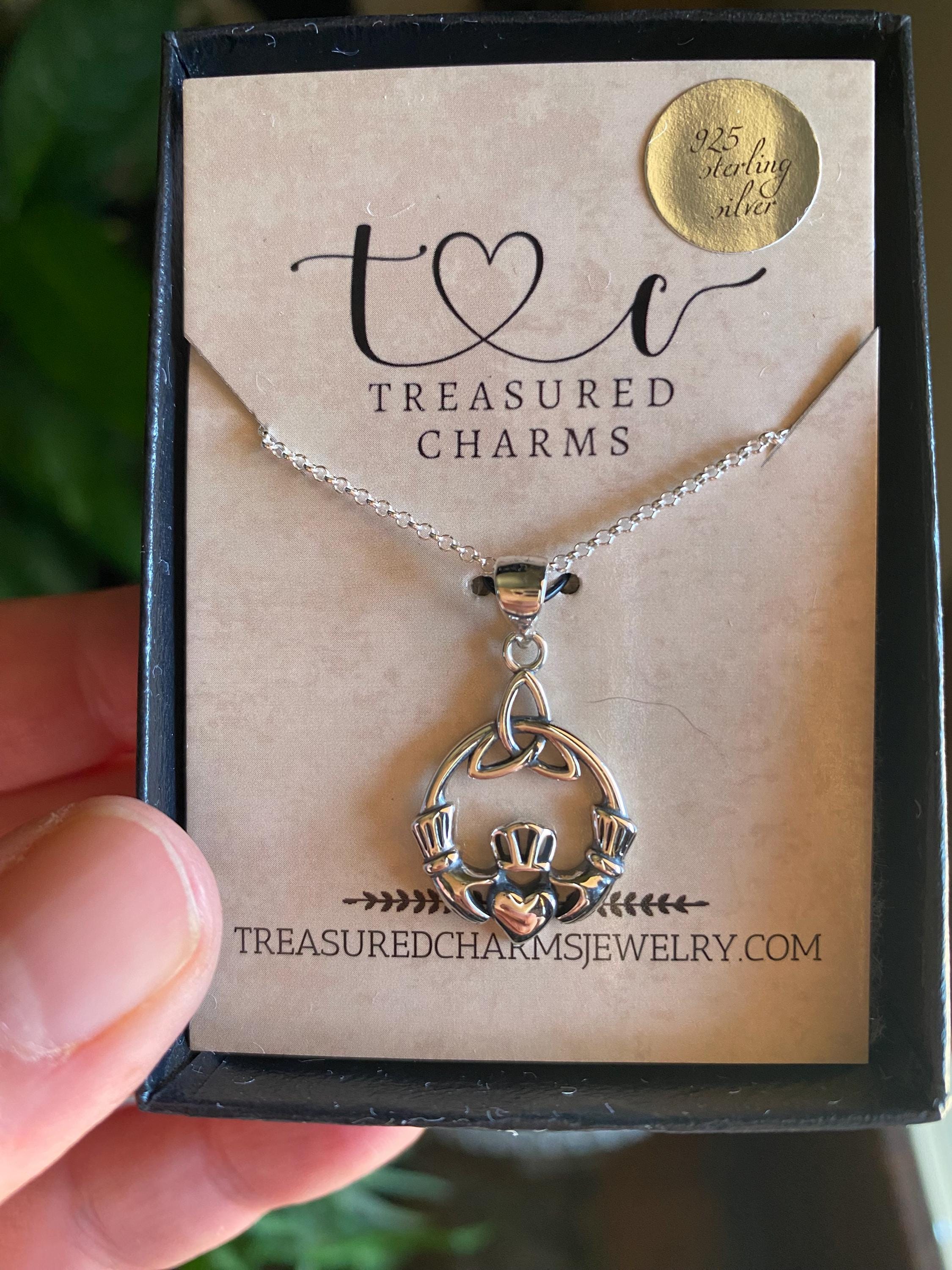 This Claddagh Symbol Necklace comes on a sterling silver chain that is available in different lengths. Please choose your desired length from the drop-down menu when placing the item in your shopping cart.