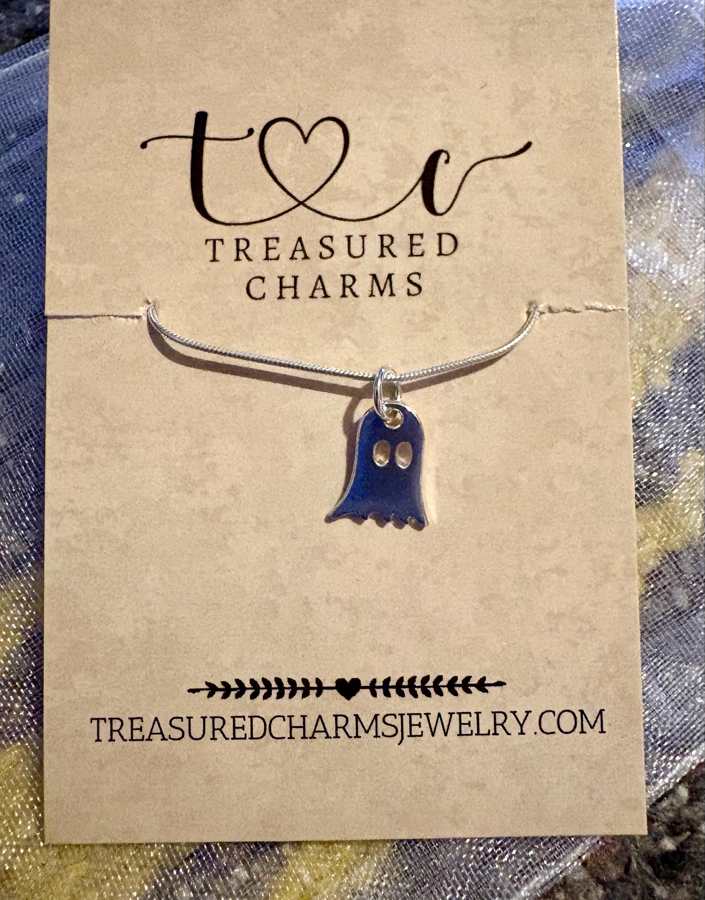 This Ghost Necklace comes on a sterling silver chain that is available in different lengths. Please choose your desired length from the drop-down menu when placing the item in your shopping cart.