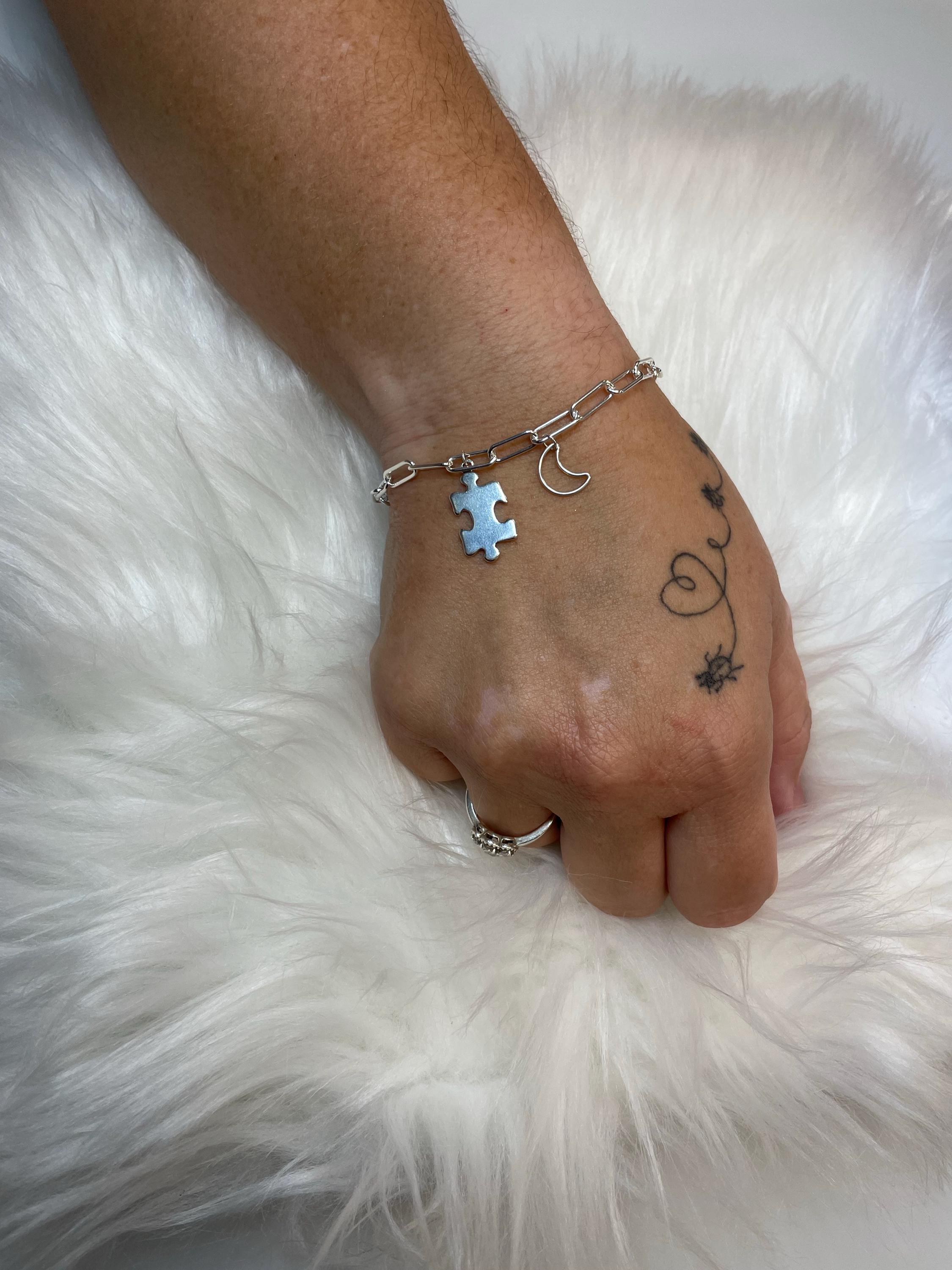 This Puzzle Charm comes with a silver jump-ring as pictured. Please note that photo is not to scale and may appear larger to show detail. Refer to exact measurements below.