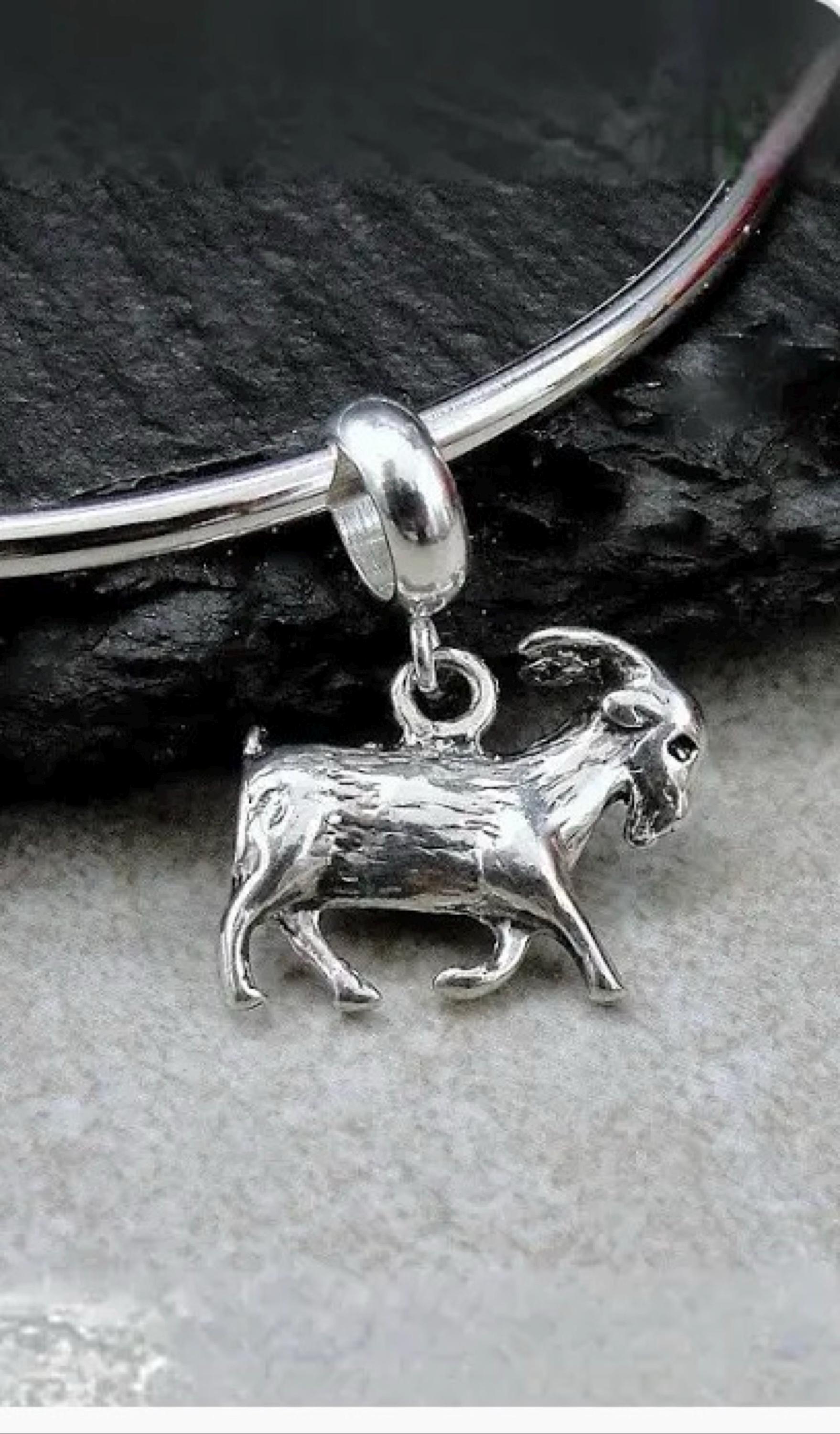 This Goat Charm comes with a silver dangle bead as pictured. Fits on all major brand European style bracelets. A list of compatible chains is available here: https://etsy.me/2BY7DAW