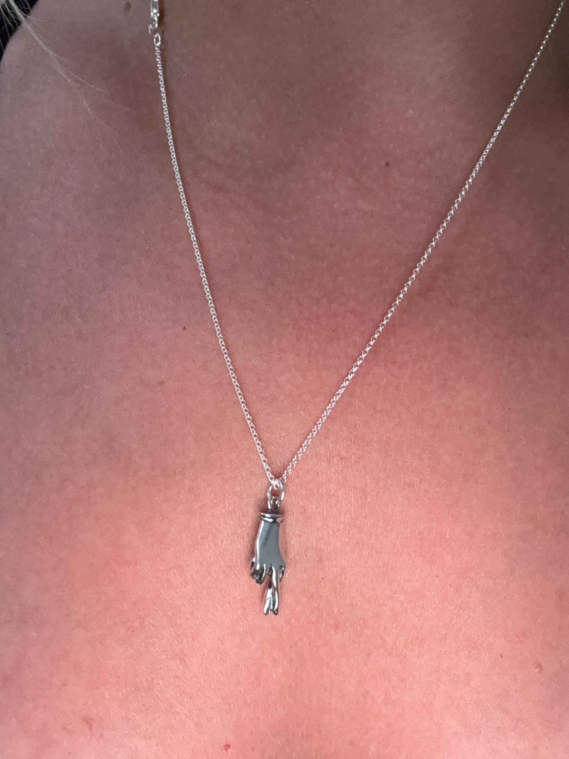 I do love this charm, and it is incredibly affordable. It is solid and super fun. My one issue is that because the top finger is straight, rather than curving over the bottom one, from a distance it distinctly looks like you're... well, making a gesture your 13 year-old thinks is funny but other people might not. However! If you wear it so that the palm faces out, it makes it much clearer that the fingers are crossed and not just a single finger extended. Wear it palm out when you want luck, or palm in if you're feeling saucy.