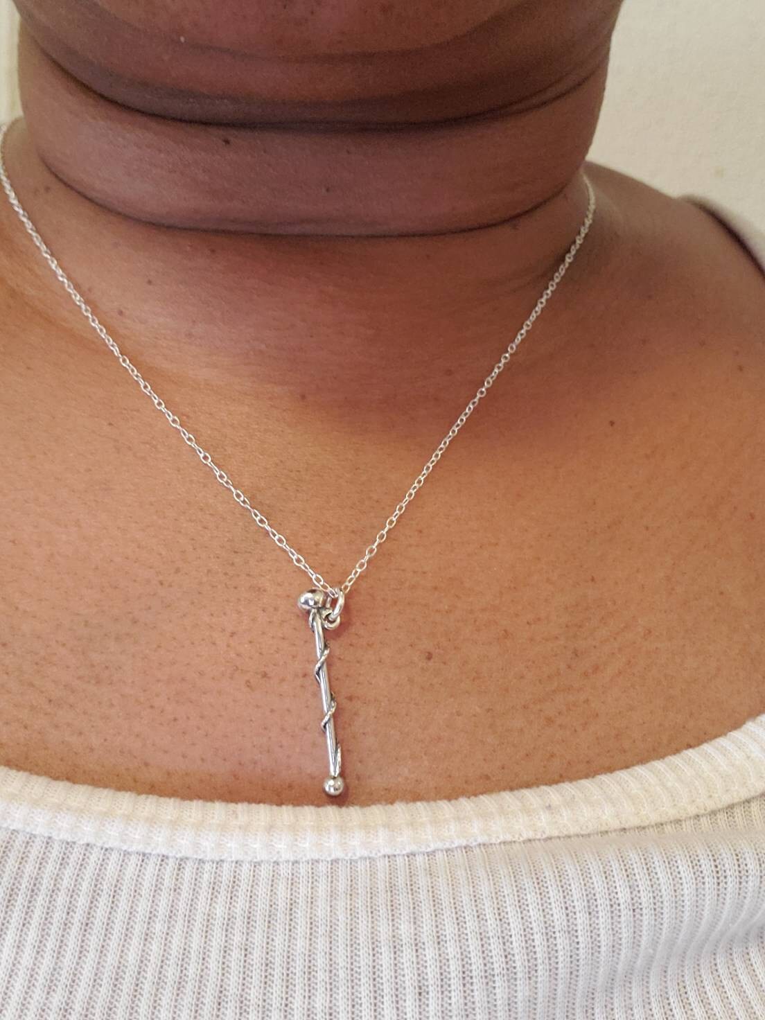 This Drum Majorette necklace comes on a sterling silver chain that is available in different lengths. Please choose your desired length from the drop-down menu when placing the item in your shopping cart.