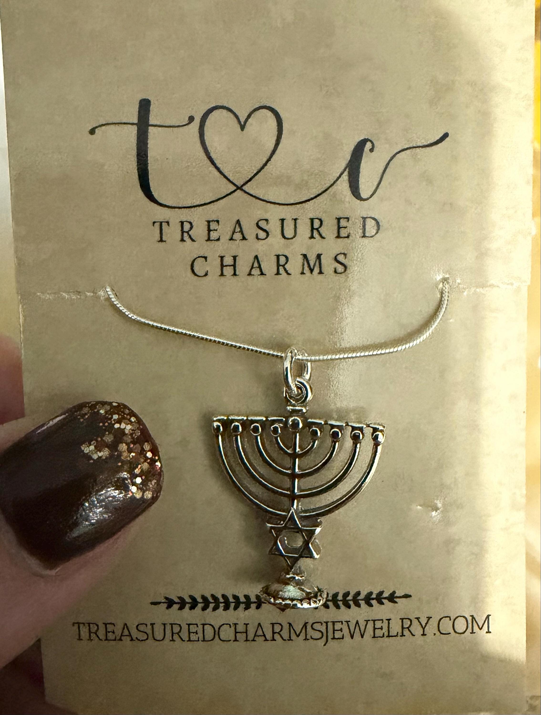 This Menorah Necklace comes on a sterling silver chain that is available in different lengths. Please choose your desired length from the drop-down menu when placing the item in your shopping cart.
