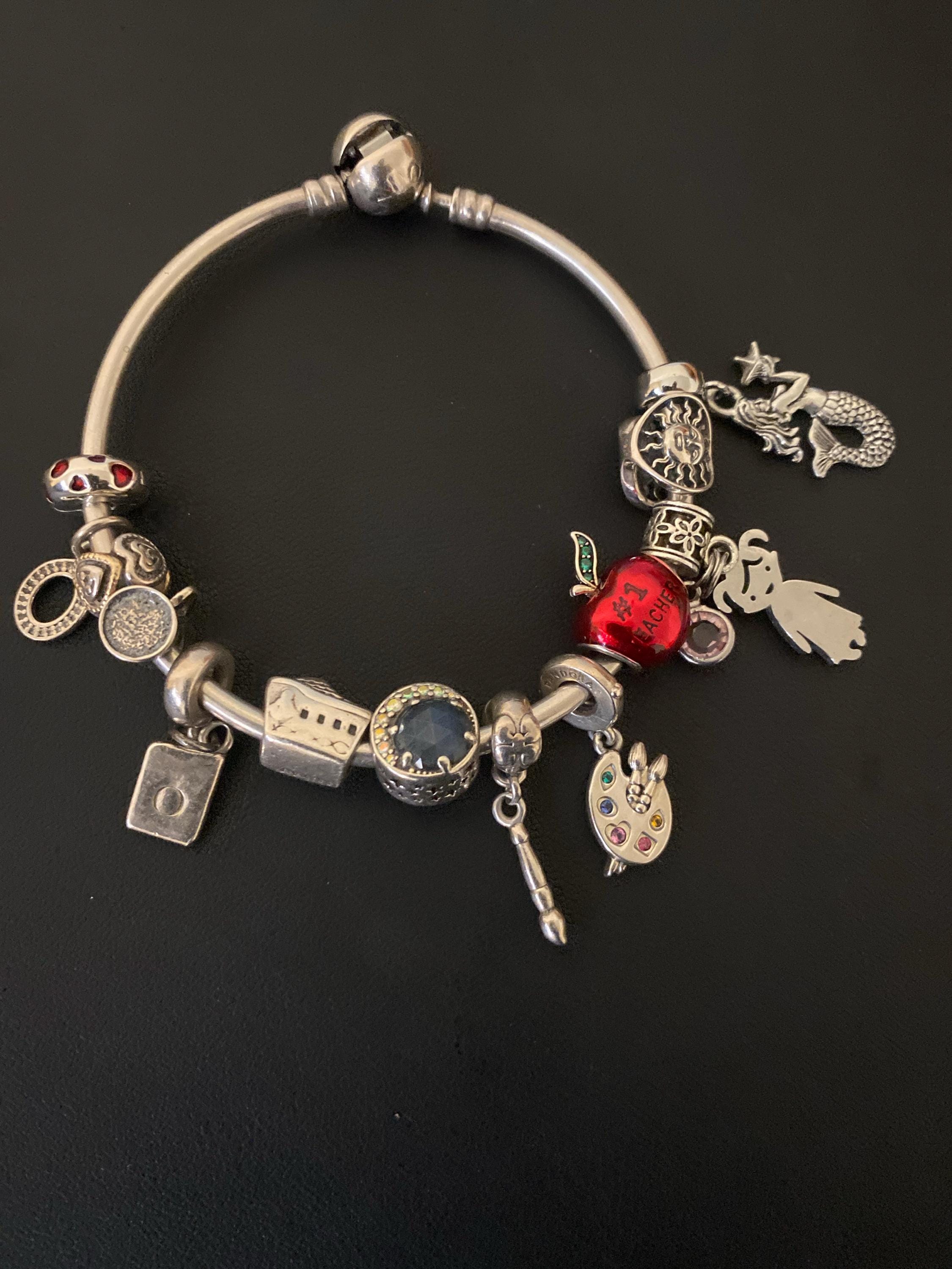 This Mermaid Charm comes with a silver dangle bead as pictured. Fits on all major brand European style bracelets. A list of compatible chains is available here: https://etsy.me/2BY7DAW