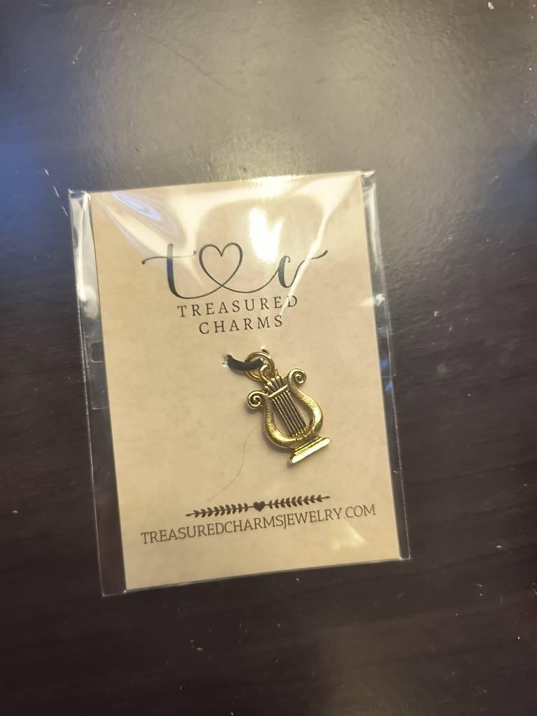 This Lyre Charm comes with a gold jump-ring as pictured. Please note that photo is not to scale and may appear larger to show detail. Refer to exact measurements below.