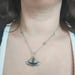 This UFO with Alien Charm necklace comes on a silver-plated chain that is available in different lengths. Please choose your desired length from the drop-down menu when placing the item in your shopping cart.